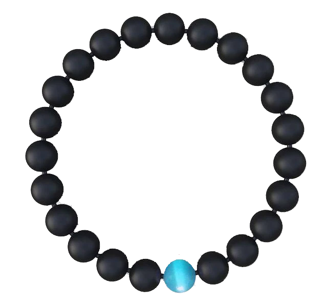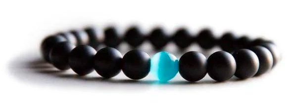 • Handcrafted with purpose and intention, this bracelet features Black Onyx main beads and a Blue Water Drop top bead